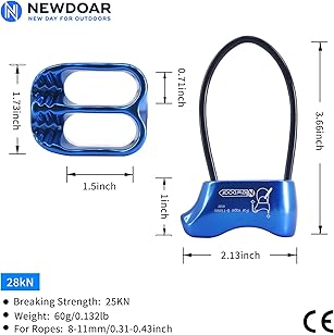 [Double Slots Construction]: NewDoar descending Belay device offers effective braking to half, twin and single ropes, 8~11mm/( 0.315-0.433 inch). Breaking Strength: 25KN, Used with half, single or twin ropes.
