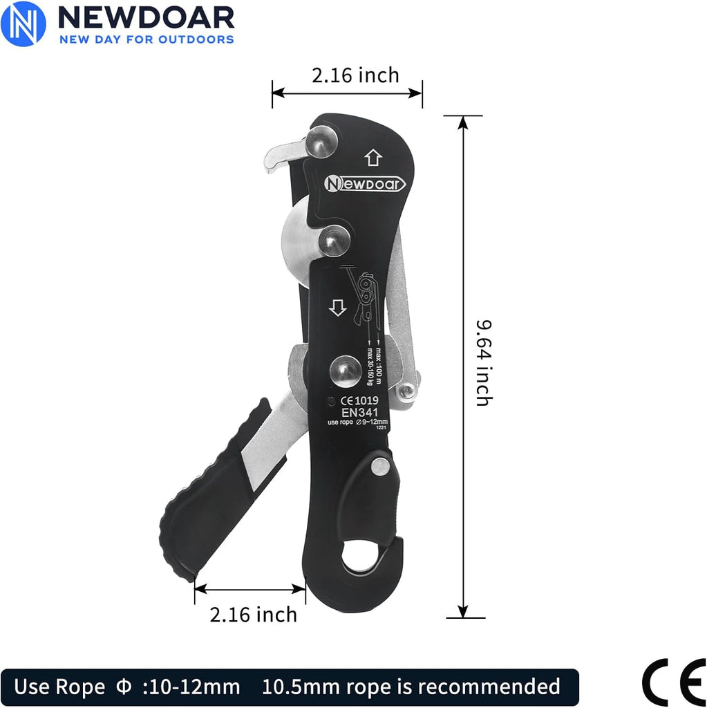 [Safty Guarantee]:CE 1019 EN 341 ensures its security. Climbing Descender you can trust.Weight limited:330 lb(150kg),Breaking Strength: 1.47kN .Suitable for0.35-0.47(9-12mm)inch dia. Ropes.