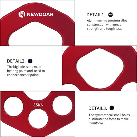 • Descender Plate is made of magnesium-aluminum alloy and is durable. The diameter of each small hole is 20mm(0.8inch), and the symmetrical small holes are evenly stressed when you use it. Large holes are the main bearing point.