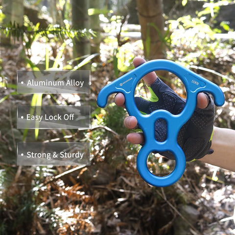 • [IMPROVE SECURITY] The 50KN Rescue Figure uses the friction between the rope and the Descender device to slow down the descent or brake. Even in rescue or emergency situations, extra thick protection with ears and belay slot will keep your safety,is an improvement over standard figure 8 devices. It uses the friction between the rope and the Descender device to slow down the descent or brake.