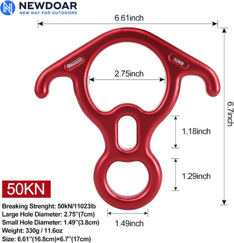 NewDoar Downhill Equipment Rigging Plate 40kN Rescue Figure 8 Descender-Red
