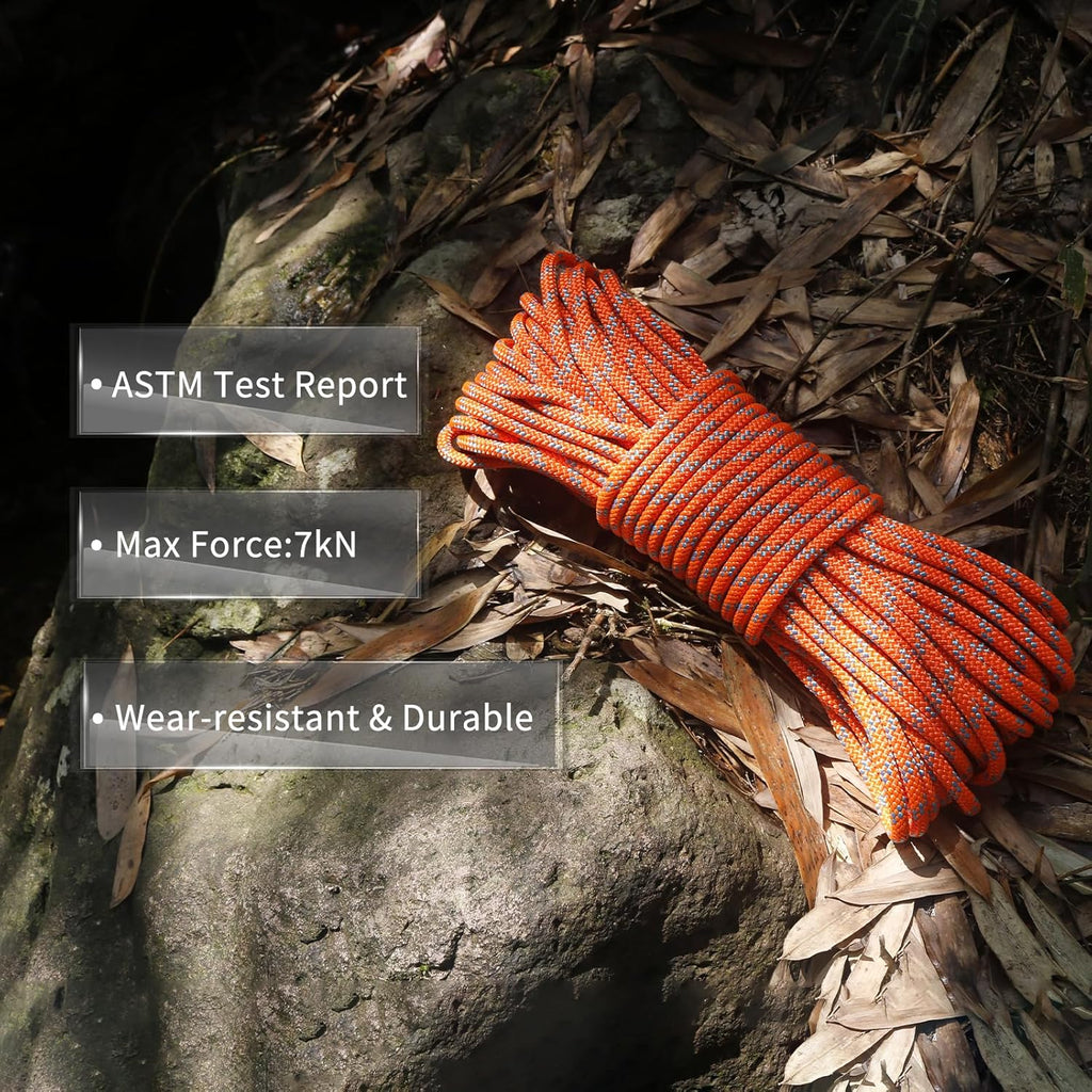 - [HIGH ABRASION RESISTANCE]: The static rope is made of double braid core, except for the inner core, the rope also has braided cover to protect the kernel, which makes the cord super more firm than normal. What's more, the rope is also easy to tie, which makes climbing more convenient and comfortable, bringing better outdoor experience.