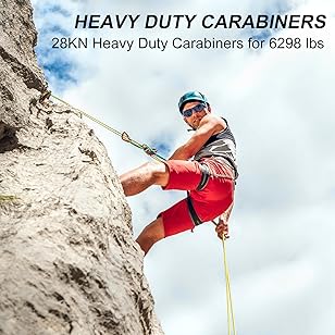 [CE UIAA Certified]: These Carabiner are made from7075 aviation aluminum material, which is super strong and portable. CE EN 12275:2013 & UIAA 121 QUALITY GUARANTEED! keep you safe and can stand 28KN (approx. 6180 LB force) pull force and up.