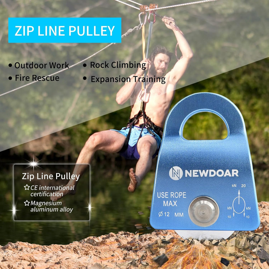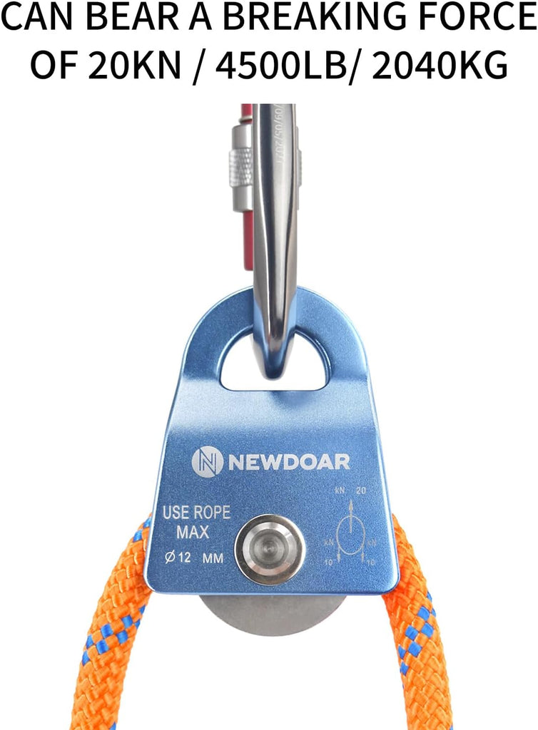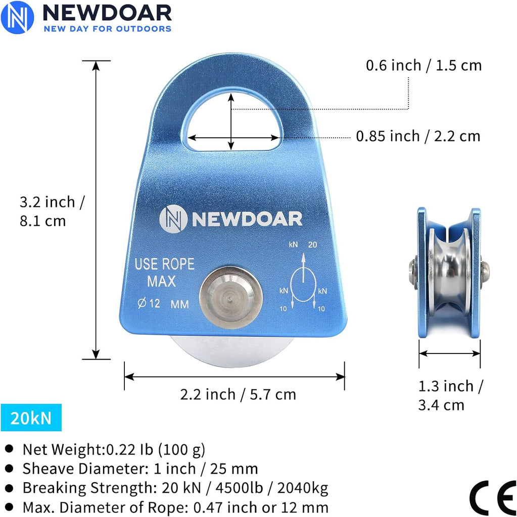 NewDoar CE Certified 20kN Micro Pulley Fixed Side Trolley for Climbing Rescue-Blue 1pcs