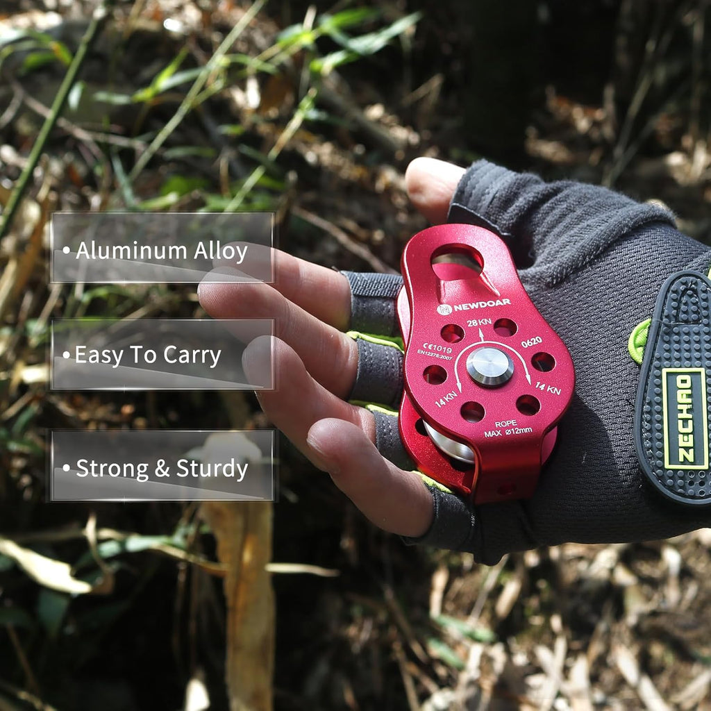 NewDoar Fixed Plate Micro Pulley-Red,26KN CE Certified(26KN Red 1pc)