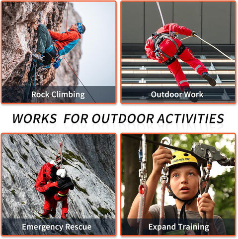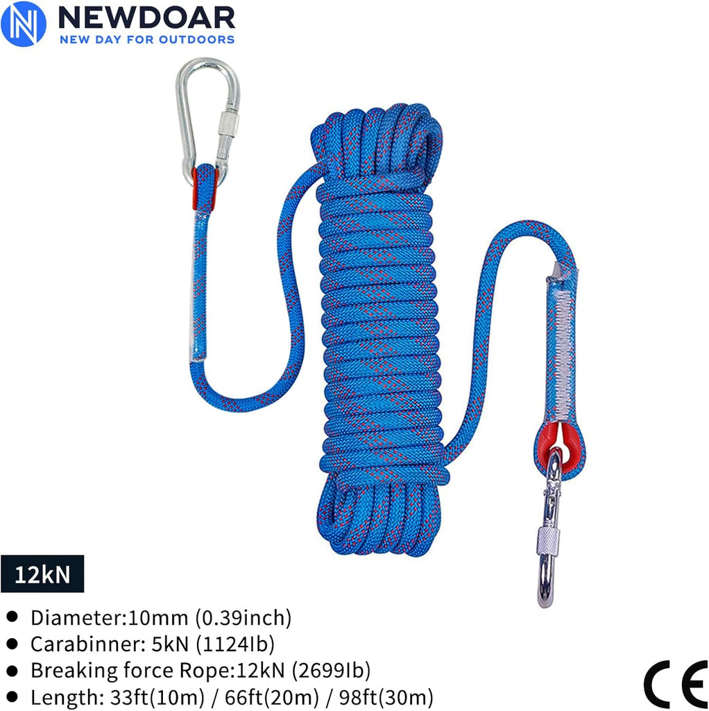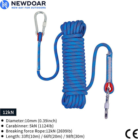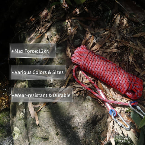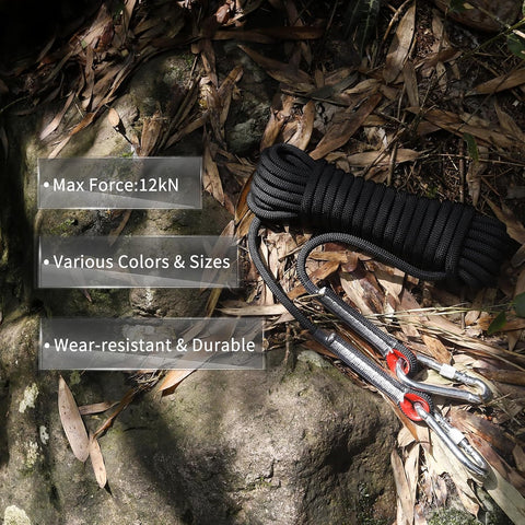 [DURABLE]:Maximum breaking force test: 21KN.Safety Rope made of high strength polyester and reinforced inner core, which is durable and anti-wearing; Compare with other climbing ropes, our safety rope use high quality Clip with 316 anti-oxidation coating,which can protect the rope.suitable for rock climbing enthusiasts beginners.